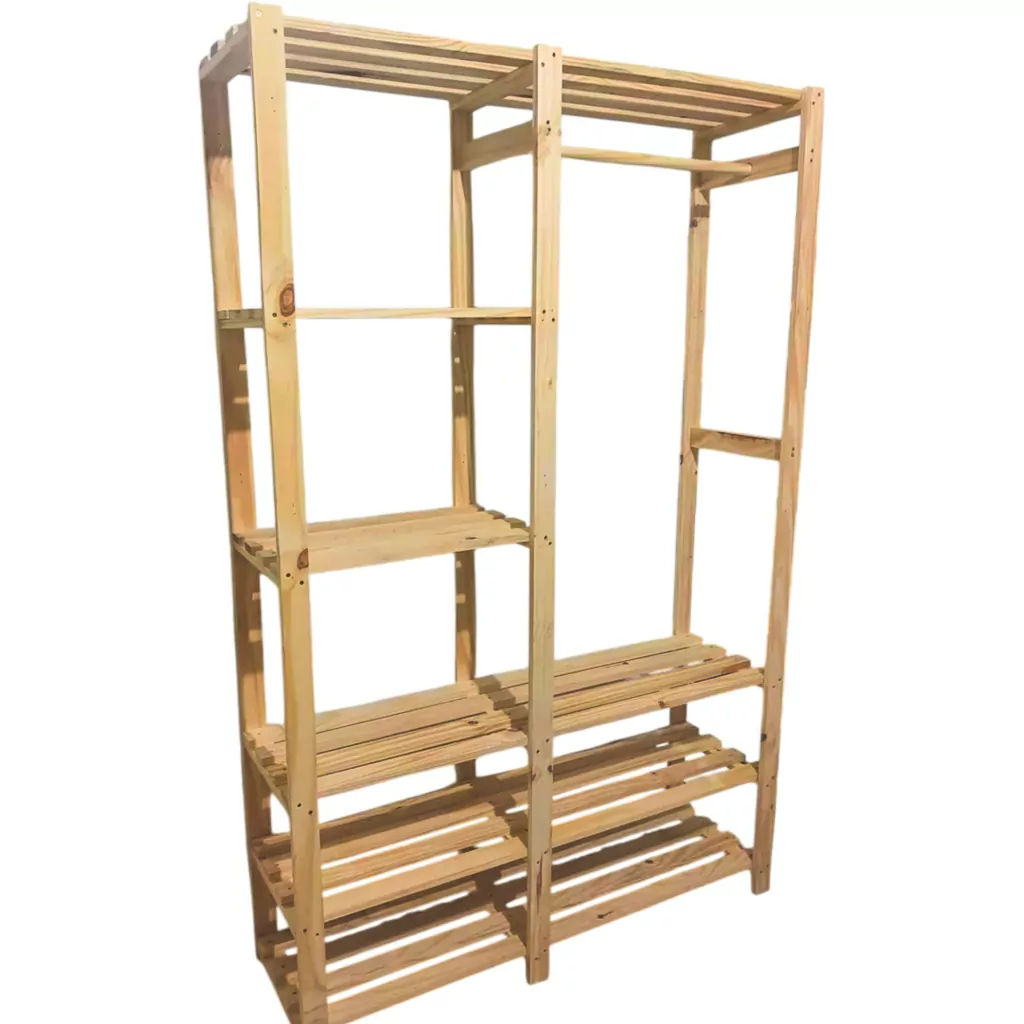 Arara Dupla de Madeira Pinus – Organização em Dobro com Estilo Rústico