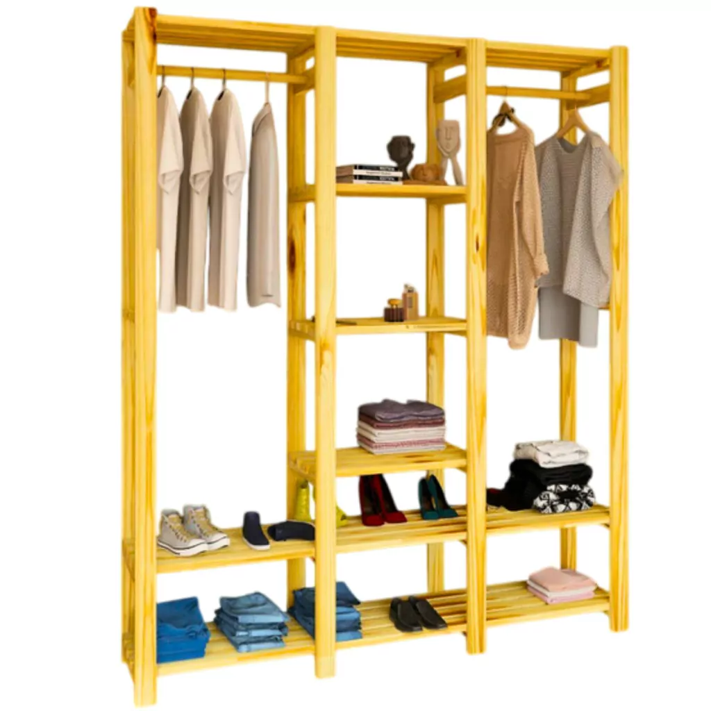 Arara Tripla Rústica em Madeira Pinus – Organização com Estilo para Closets e Lojas