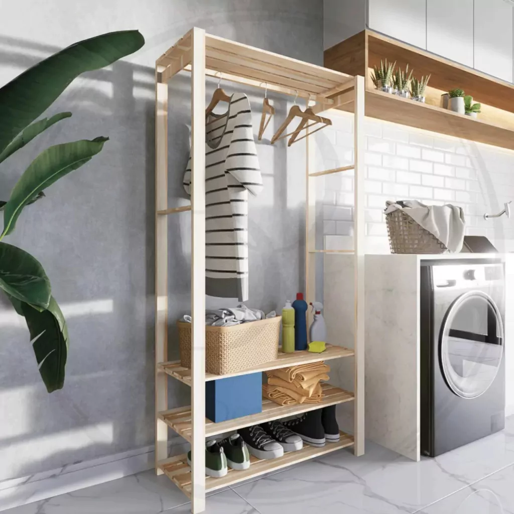 Arara Closet de Roupas com Sapateira em Madeira Pinus – Rústica e Funcional